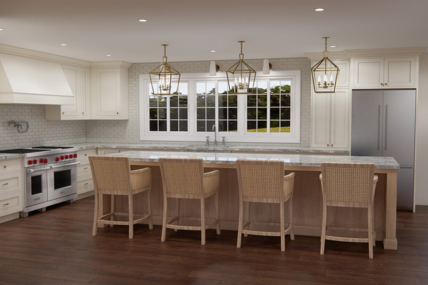 We don’t create 3D renderings for all of our projects, but we find them extremely helpful for full-home renovations, where our clients want that extra layer of confidence in the finished result. For their kitchen, we created this classic, updated, and fresh design…